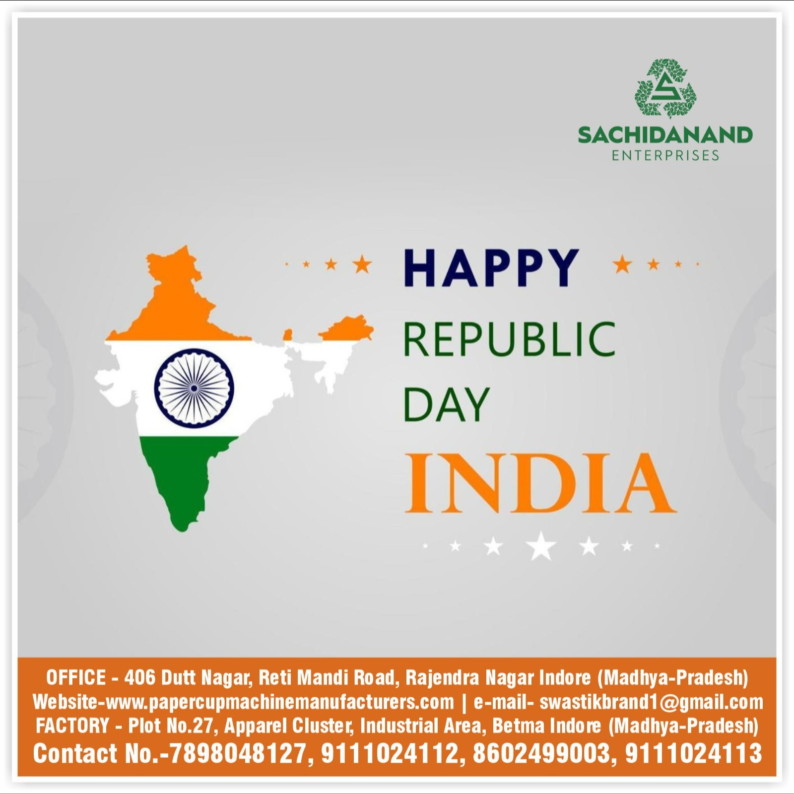 As a responsible entrepreneur, we honor the values that make India strong. Happy Republic Day! - Sachidanand Enterprises