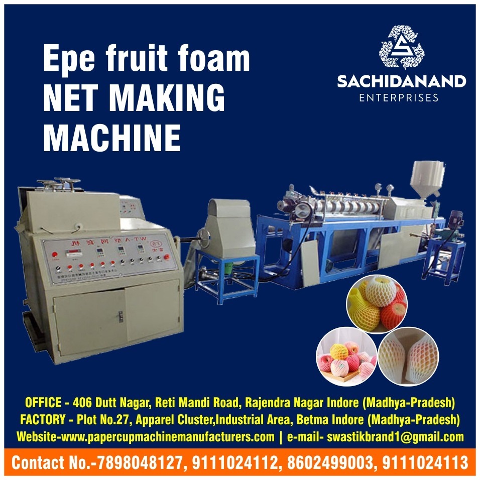 Sachidanand Enterprises, a leading manufacturer in Indore, specializes in high-quality EPE Fruit Foam Net Making Machines. Our advanced machines are designed to produce durable and flexible EPE (expanded polyethylene) foam nets, ideal for protecting fruits during handling and transportation. Known for their superior cushioning and shock absorption properties, our foam nets ensure that fruits remain undamaged and fresh, reducing spoilage and waste.