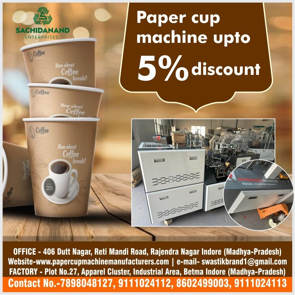 As a limited-time offer, Sachidanand Enterprises is providing a 5% discount on all paper cup machines, making this the perfect opportunity for businesses to invest in top-quality equipment at competitive prices. With our expertise and dedication to customer satisfaction, Sachidanand Enterprises is a leading choice for reliable paper cup production solutions in Indore.