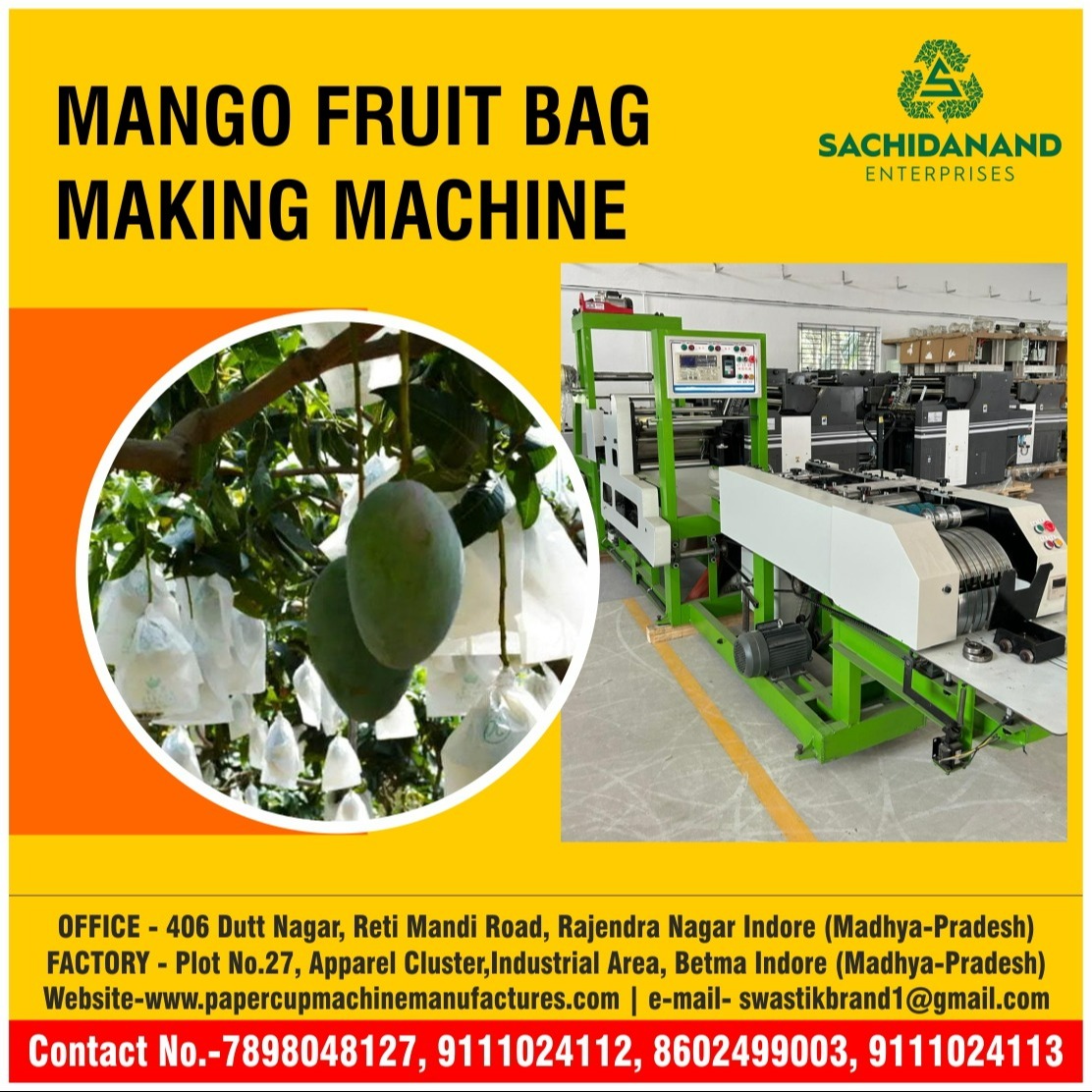 Sachidanand Enterprises is a trusted Mango Fruit Bag Making Machine supplier in Indore, offering high-quality machines designed to meet the needs of farmers, horticulturists, and agribusinesses. These machines are specially engineered to manufacture protective mango fruit bags that safeguard the fruits from pests, insects, dust, and harsh weather conditions while ensuring healthy growth and better yield. With advanced technology, durability, and user-friendly operation, the machines supplied by Sachidanand Enterprises enable bulk production of uniform, high-quality fruit bags, saving time and labor. Our team ensures reliable installation support, technical guidance, and after-sales service to enhance customer satisfaction. Known for competitive pricing and a commitment to quality, they have earned the trust of clients across Indore and beyond. By supplying efficient and performance-driven machines, Sachidanand Enterprises plays a vital role in supporting sustainable farming practices and helping farmers achieve higher-quality produce with improved profitability.