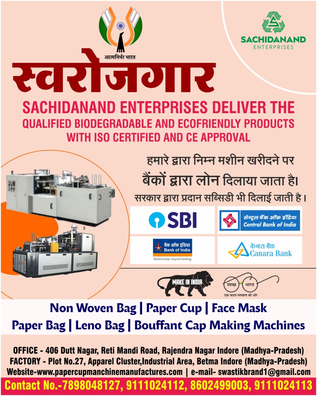 स्वरोजगार Sachidanand Enterprises deliver qualified biodegradable & ecofriendly products with ISO certified & CE approval.