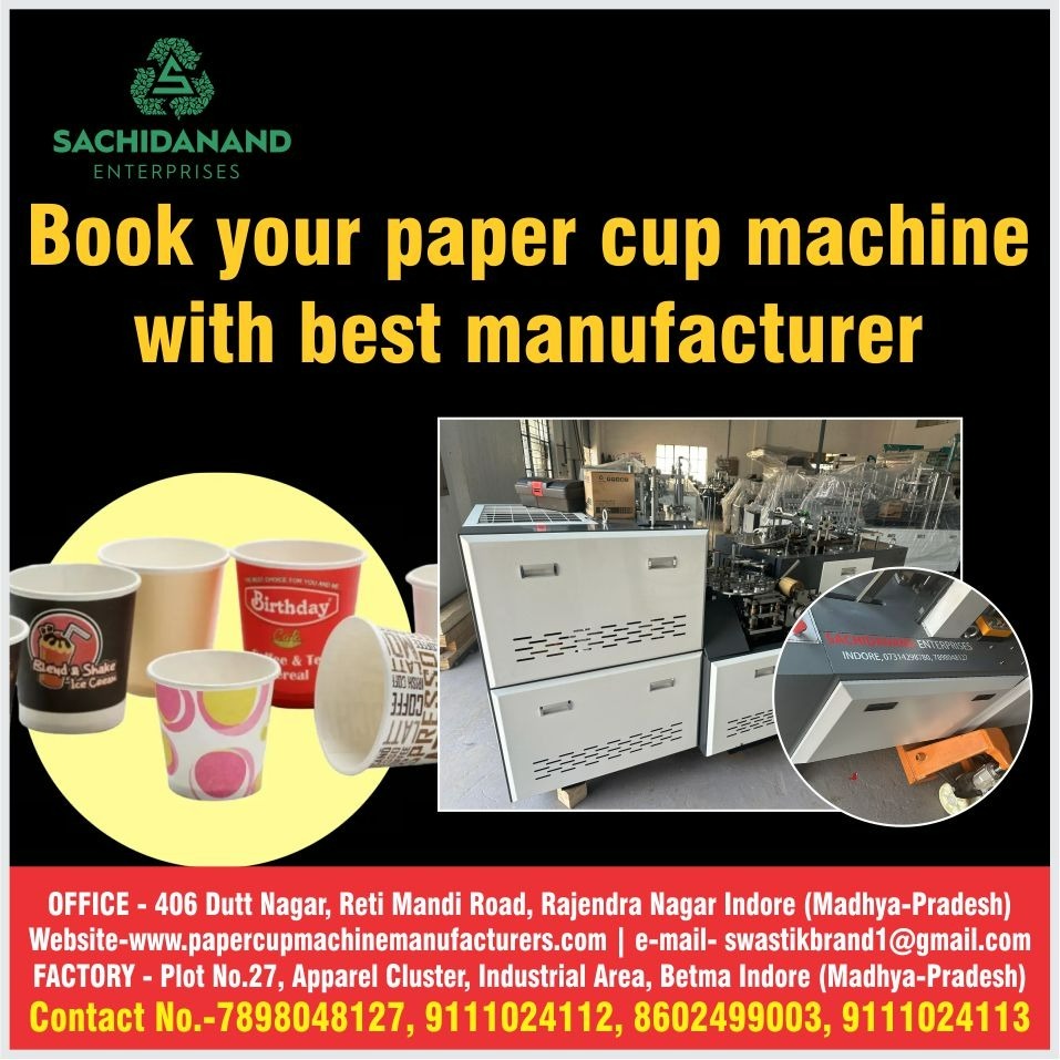 Sachidanand Enterprises is a trusted paper cup machine supplier in Indore, known for delivering high-performance and durable machines that meet the growing demands of the disposable cup industry. Specializing in automatic and semi-automatic paper cup machines, they offer efficient solutions for manufacturing cups of various sizes and thicknesses. With a strong focus on quality, reliability, and customer satisfaction, Sachidanand Enterprises ensures timely delivery, installation support, and after-sales service. Our machines are designed for smooth operation, low maintenance, and high output, making them ideal for startups and established businesses alike. Whether you're looking to expand your production or start a new venture, Sachidanand Enterprises provides expert guidance and the latest technology in paper cup machinery. Choose them for top-quality machines and dependable service in Indore’s packaging and manufacturing sector.