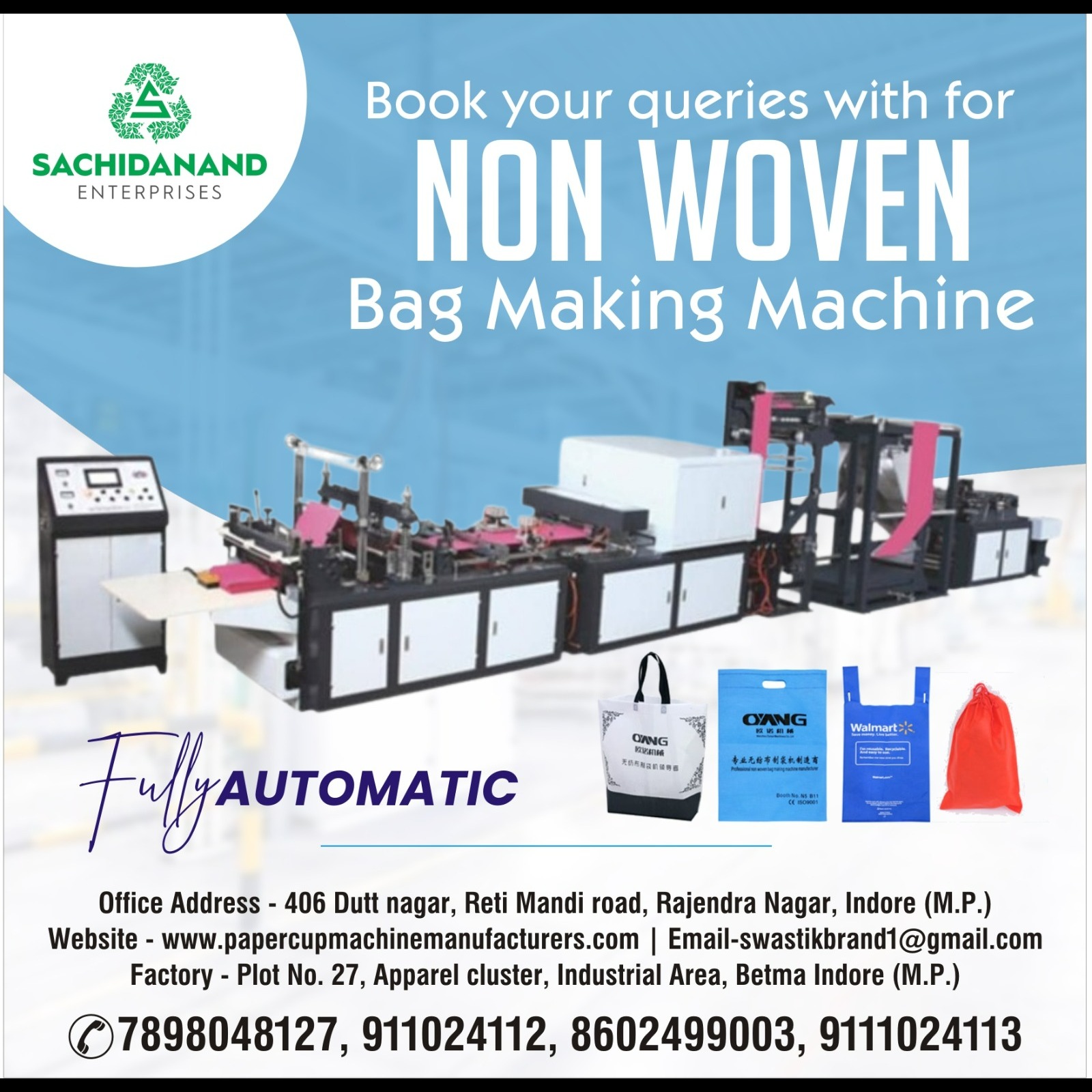 Contact Sachidanand Enterprises today β your reliable partner for Non Woven Bag Making Machines in India.